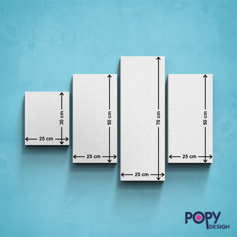 4-dílný obraz v rozměru 100x70 cm (30x25cm-50x25cm-70x25cm-50x25cm)