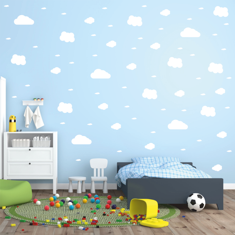 Samolepka je složena celkem ze 73 mráčků o průměru 20cm, 15 cm, 10 cm a 5 cm.
