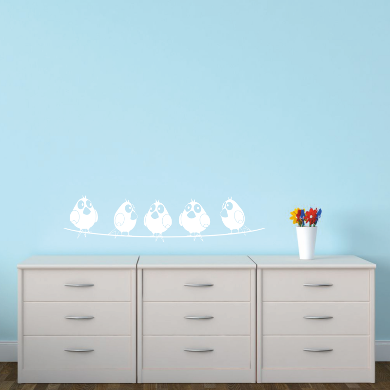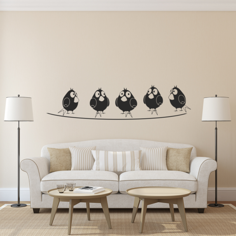 Samolepka je tvořena celkem z 5ti ptáčků o výšce cca 12 a 25 cm + 1 drát o délce 60 a 120 cm.