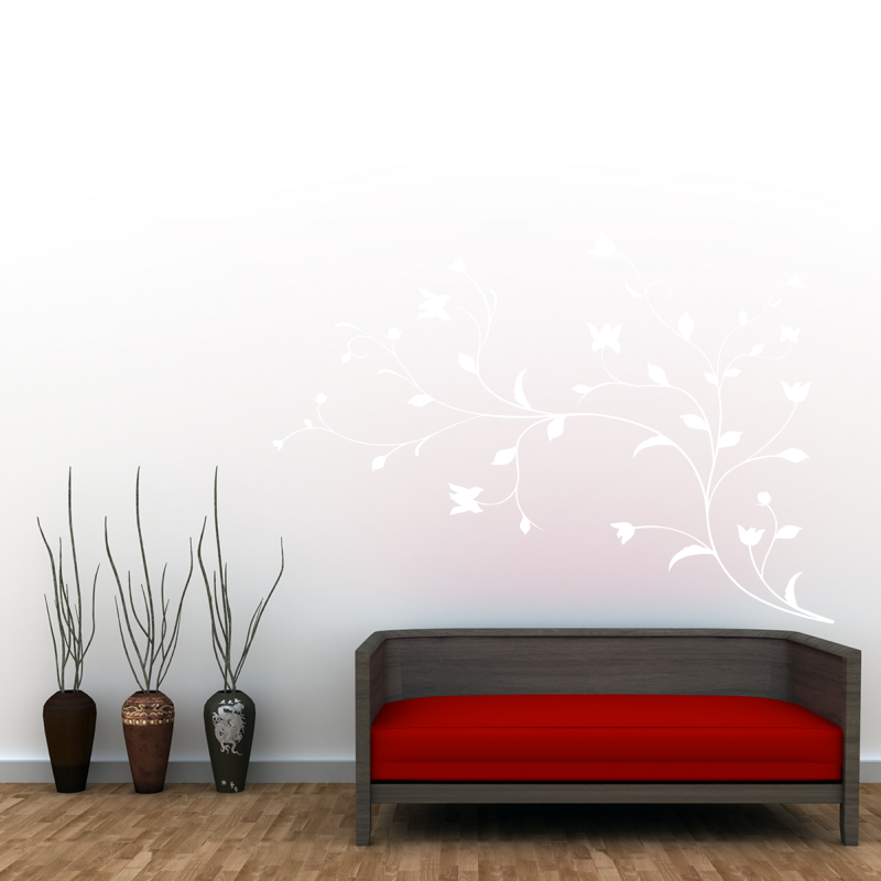 Samolepka na zeď - Květy na větvičce