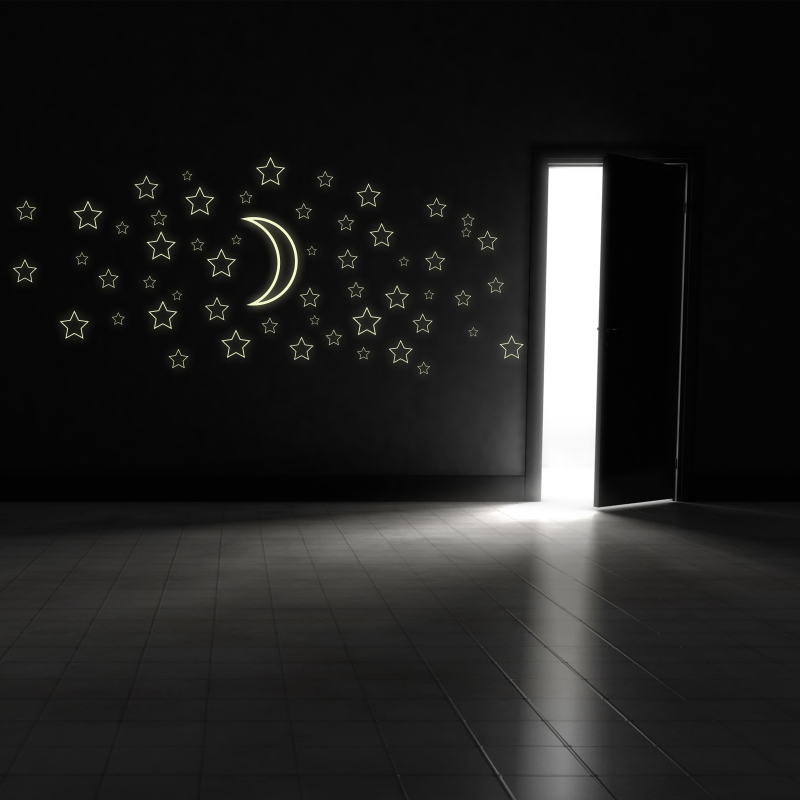 Svíticí samolepky vyrábíme z kvalitní fólie, která vydrží svítit dlouhé hodiny. Hvězdičky můžeš lepit nejenom na zdi, ale taky na kachličkách, plastech, sklu, dřevě… Ale to už záleží na tobě a na prostoru, kde Ti samolepka bude svítit.