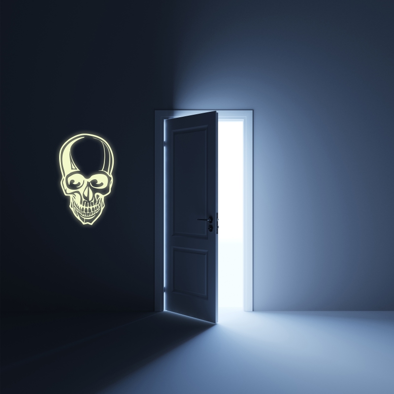 Jedna samolepka na zeď dokáže místnost změnit k nepoznání a co teprve svitící lebka... |
