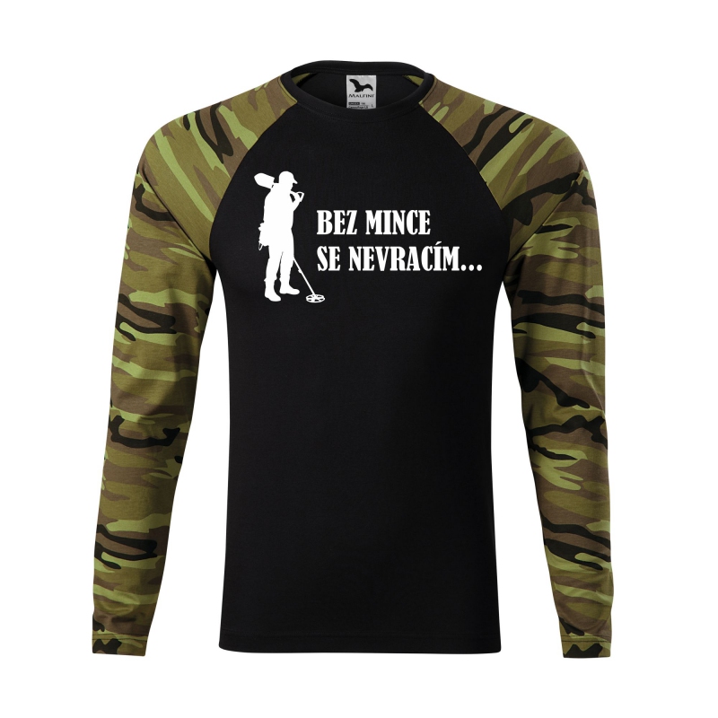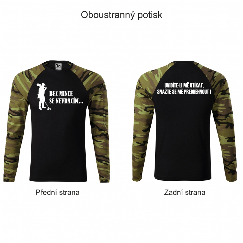 Tričko s jednobarevným oboustranným potiskem určený pro hledače pokladů.
