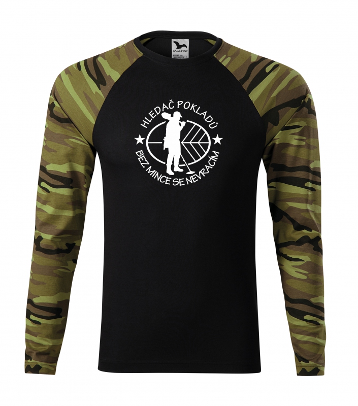 Tričko s potiskem určený pro hledače pokladů detektorem.